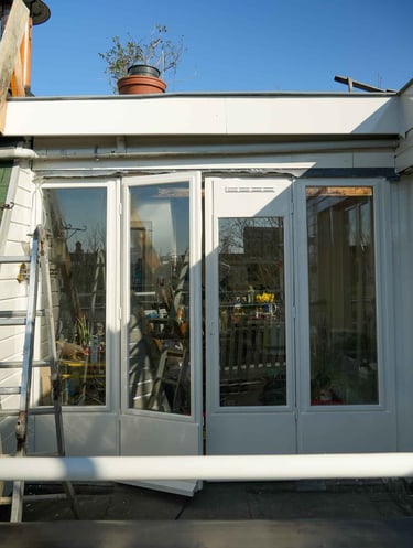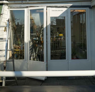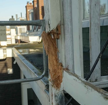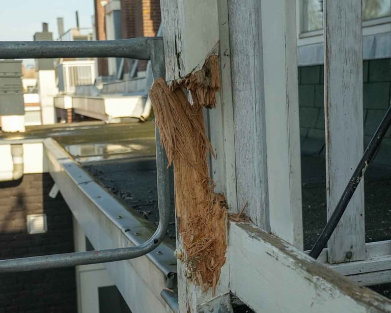 Bij deze woning in Amsterdam troffen we ernstig verouderd schilderwerk en meerdere rotte plekken in de kozijnen en deuren. De verf bladderde af, het hout was aangetast door vocht en sommige delen waren zó verrot dat vervanging noodzakelijk leek. Toch besloten wij om, waar mogelijk, het bestaande hout te herstellen – een duurzame en kostenefficiënte oplossing voor de klant.