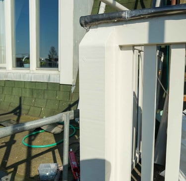 Zonder ingrijpen zou dit leiden tot dure vervanging van het complete kozijn. De opdrachtgever wilde dit voorkomen en koos voor ons vakmanschap en onze ervaring in houtrotherstel en schilderwerk.