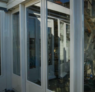 Houtrot in de onderdorpels en hoeken.